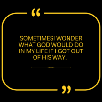 Do you ever think about what your life would be like if you got out of God’s way? I cause myself a lot of pain and suffering because I try … Continue Reading →