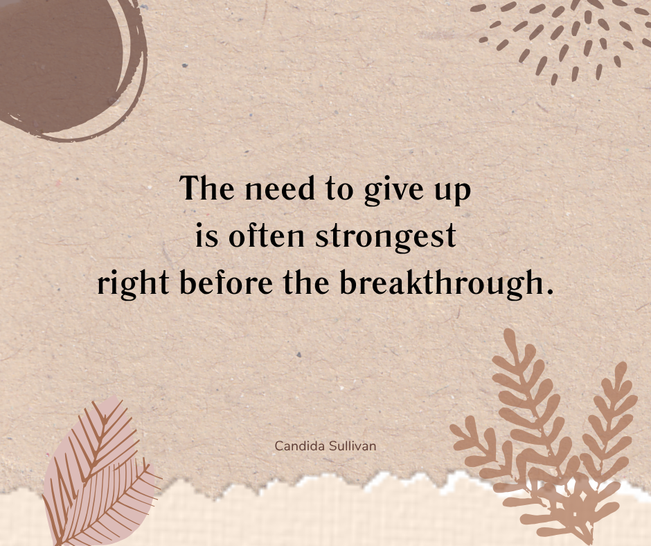 The urge to give up is often strongest right before the breakthrough. That’s when we need to pray harder and cling to the Lord.