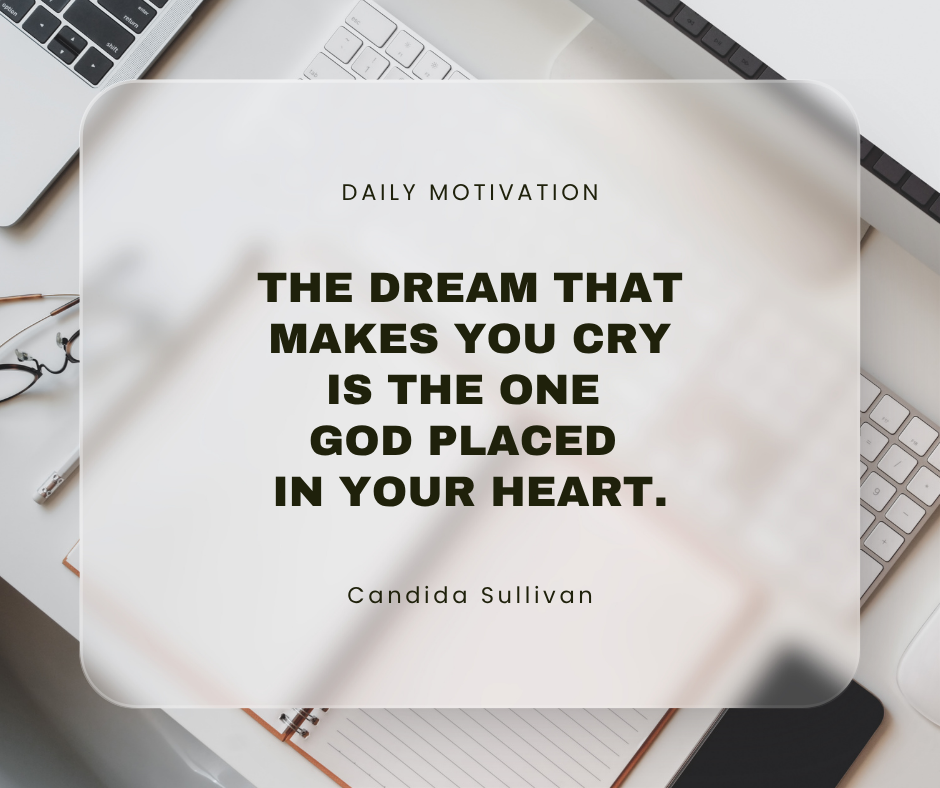 In the past twenty-two years, I’ve had lots of failures. So many times, I’ve wanted to quit. But each time my heart whispers, hold on a little longer. Now, when the enemy knocks me down, I’ve learned that I’m in the perfect place to pray. God knows and understands the desires of my heart—He’s the One who put them there.