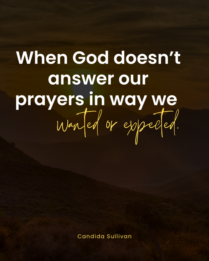 I get it. I really do. I understand the crushing pain of unanswered prayers and a heart full of pain. We want God to answer us in the way we want, but sometimes God has another plan. He heard prayers that we didn’t. He saw things that we couldn’t. And even when we feel alone with all of our heartache, God is with us.