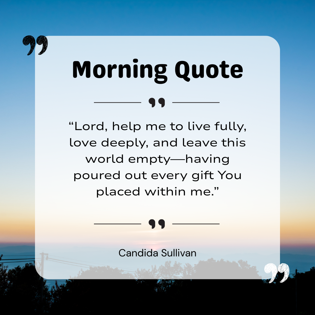 “Lord, help me to live fully, love deeply, and leave this world empty—having poured out every gift You placed within me.”
