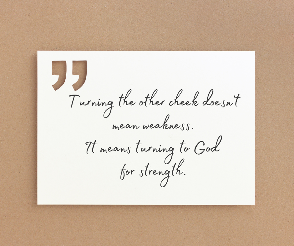 So how do we turn the other cheek anyway? The only way I can do this is through prayer. In myself, I am not strong enough to turn away from the anger. I’ve always wondered what it really meant to turn the other cheek.
