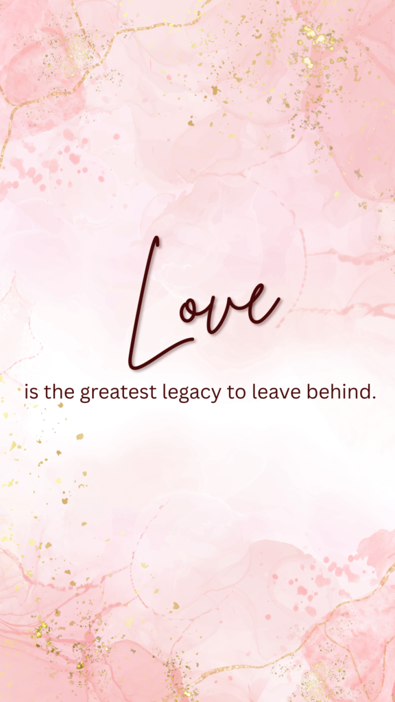 My greatest gift to the world might never be what I accomplished, but who I loved well. God gave me my precious family to love, and I sincerely hope that I please Him by how well I love them.