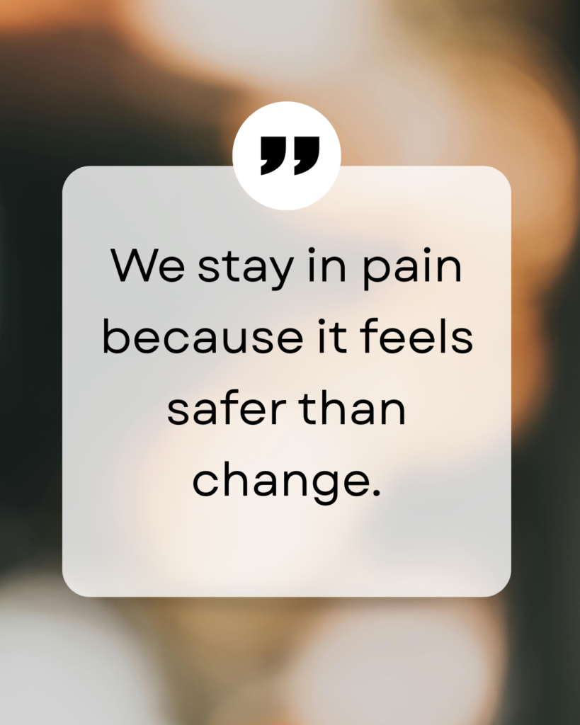 So we stay in the discomfort we’ve learned to manage and hold onto the pain every day. Somehow believing that it will get better, without any change or real effort from us. We become afraid of rocking the boat any little bit because we don’t want to drown.