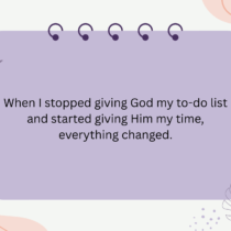 God doesn’t want the leftovers of our day. He wants us to make time for Him—to be intentional about our relationship. While we might tell ourselves we’re too busy or … Continue Reading →
