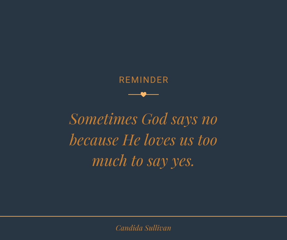 While I don’t understand everything, I do know this one thing, and it’s a major revelation when we understand it on a deeper level. God cares for us. He loves us too much to give us things that will harm us. So when He chooses not to answer our prayers, the way we ask, He wants to give us something better. In the moment, it might hurt us. But there’s a difference in having pain for a season and having pain that destroys.