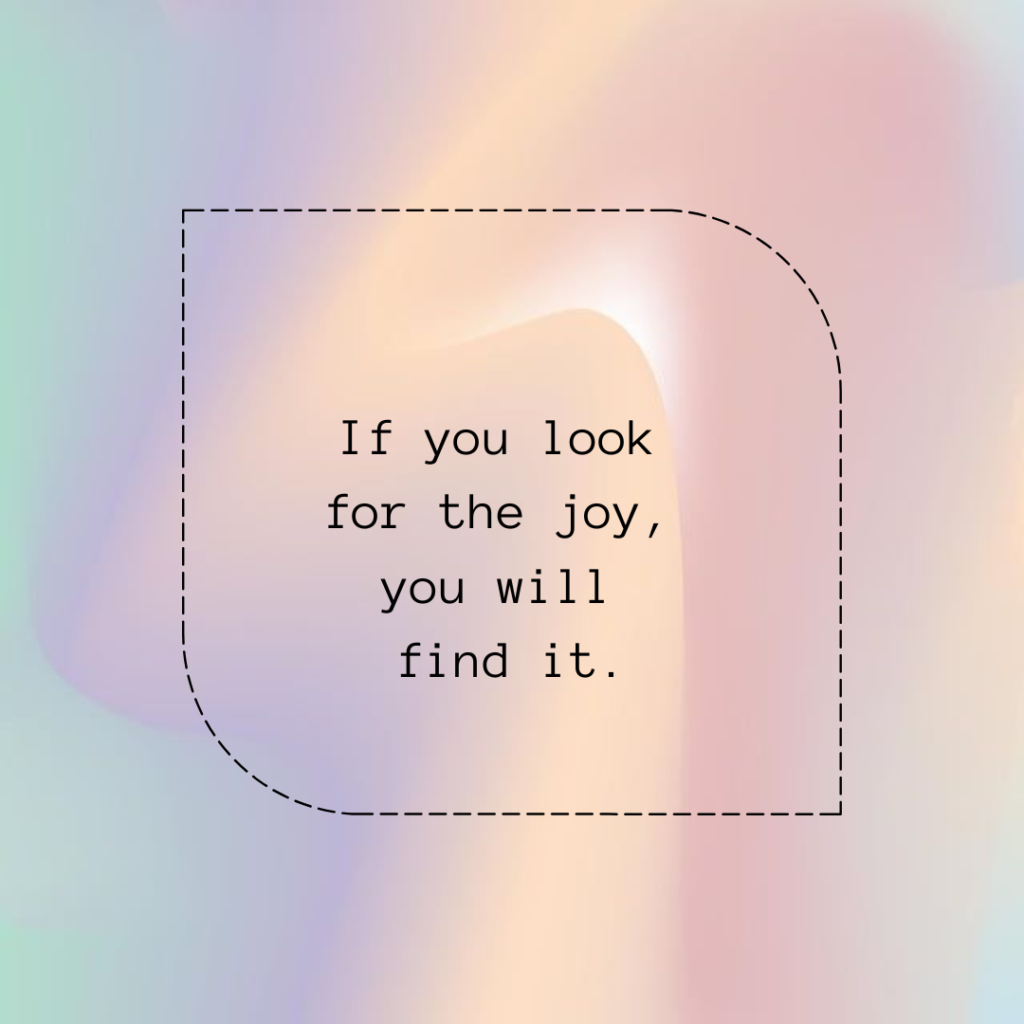 I’ve found that to live in joy every day, I need to live in gratitude. When I can learn to be grateful for each moment, even the difficult ones, then I can grow and prosper along my journey. If I only wait for the big moments to enjoy my life, then I will live a life of sorrow. Therefore, if I learn to be grateful for the little things in my life, then I will always have joy in my life.