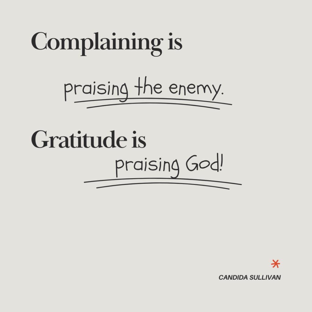 Will we praise our enemy by complaining, or honor our Lord by giving thanks?
