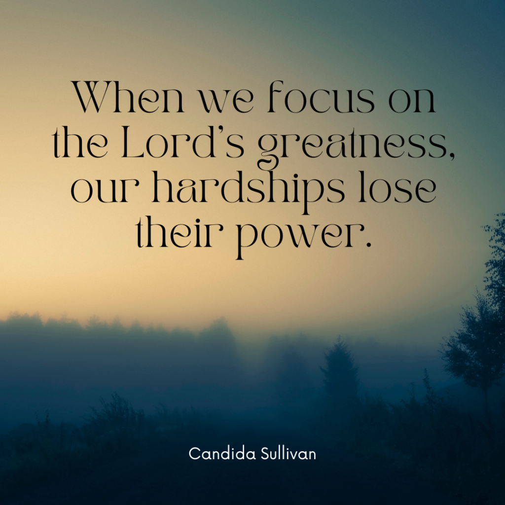 Whatever we are going through right now, God can help us. The enemy makes our problems seem so much greater than they are. As long as we are focused on the issue, we can’t see our Lord’s greatness. However, when we focus on the Lord’s greatness, our hardships don’t seem as big.